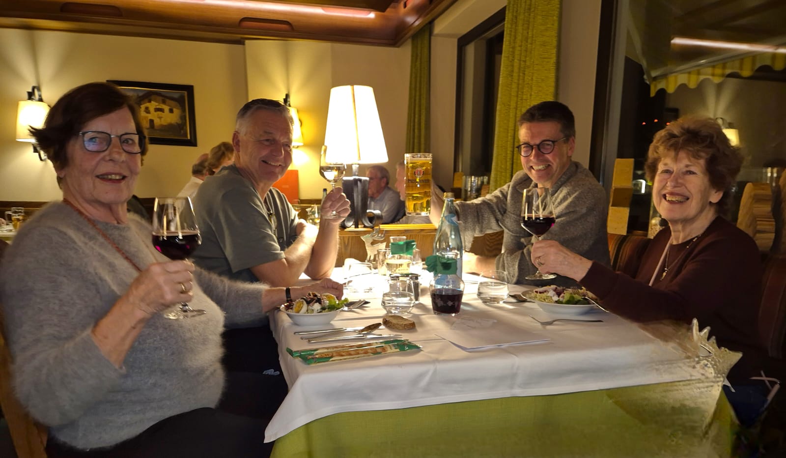 Eindelijk was het weer zover. Dit keer gingen we met 33 enthousiaste wintersporters op reis. De reis verliep verder rustig en snel. De hele week vormden zich groepjes om te skiën of te wandelen. De skiërs vonden al snel weer hun eigen weg. Wat is het dan toch weer fijn als je de routes al wat kent. Naarmate we ouder worden is dit toch een voordeel. Er hadden zich twee fantastische deelnemers opgeworpen om dagelijks geweldige wandelingen te organiseren! Petje af! Van beide kanten hoorden we mooie verhalen. Ook de skiërs kwamen van het begin tot het eind weer goed aan hun trekken.